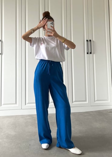 Stradi Model Saks Mavi Keten Pantolon